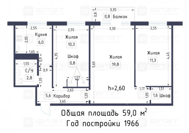 Объект 115640 НЕ ЖДИ! ЗВОНИ! ЗАЕЗЖАЙ И ЖИВИ!!!Продается хорошая 3-комнатная квартира на 5 / 5 этаж., в Вахитовском районе по ул. Татарстан д.56. Планировка: Общая площадь_59,0 кв.м. Жилая_19,8 кв.м._11,3 кв.м._10,3 кв.м. Кухня_6,0 кв.м. Санузел_2,8 кв.м. Коридор_5,6 кв.м. Шкаф_2,4 кв.м. Балкон_0,8 кв.м. Высота потолков_2,6 кв.м. Год постройки_1966. Преимущества: Обустроенный уютный двор! Парковочное места есть. Двор зеленый, тихий, ухоженный. Во дворе детская площадка. Соседи по лестничной площадке интеллигентные семейные люди! Инфраструктура: В шаговой доступности остановки общественного транспорта! Рядом находятся в шаговой доступности следующие детские сады: Детский сад 273 комбинированного вида с татарским языком воспитания и обучения. Рядом учебные учреждения: Школа 51. Средняя общеобразовательная татарско-русская школа 80 с углубленным изучением отдельных предметов. Так же дом прикреплен к детской городской поликлинике 2. Досуг: В шаговой доступности есть; Театр им. Галиасгара Камала. Парк им. Карима Тинчурина. Ближайшие улицы: Габдуллы Тукая Московская Пушкина. Также рядом в шаговой доступности есть продуктовые магазины, Магнит, Пятерочка и минимаркеты-24часа. Дополнительно есть: Озеро Нижний Кабан. Добавьте в избранное, чтобы не потерять понравившийся объект. • Электронная регистрация без очередей • Только актуальные и проверенные объекты • Работаем без скрытых комиссий и переплат Звоните с 8:00 до 20:00 или пишите в любое время — ответим быстро Цена актуальна на день публикации. Объявление носит информационный характер. Продам 3-комнатную квартиру на улице Татарстан в городе Казань.