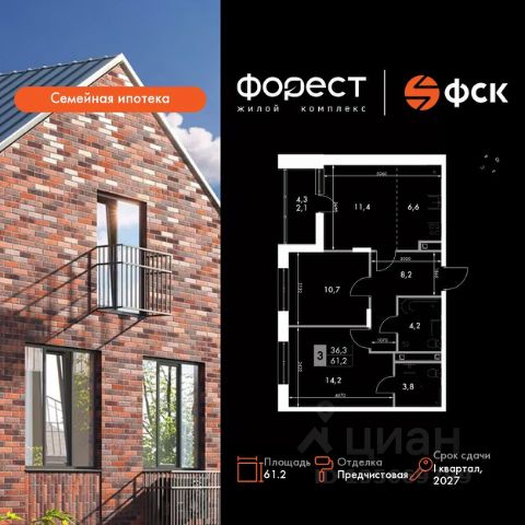 Прямая продажа от застройщика! Жилой Комплекс комфорт-класса. Продаётся 3-к квартира номер 15 общей площадью 61.2 кв.м. на 2-м этаже 7 этажного здания. Отделка Whitebox. Цена с учётом скидки. Особенности квартиры: Квартира с предчистовой отделкой (White box). Вам не придется заниматься черновыми и трудоёмкими работы, а чистовую отделку и дизайн - сделайте на свой вкус. Информация о комплексе: "Форест" - жилой комплекс комфорт-класса, созданный для тех, кто ищет гармонию с природой, не отказываясь от городского ритма. Расположенный в окружении леса и реки, он воплощает мечту о загородной жизни со всеми удобствами города. Здесь можно проживать самые тёплые моменты с близкими, дышать свежим хвойным воздухом, встречать утро на собственной террасе или проводить вечера с друзьями под открытым небом. Благоустроенная территория, прогулочные дорожки и зоны отдыха создают атмосферу уюта и гармонии. Поблизости - лес и Волга, куда можно выбраться на прогулку в любое время, не дожидаясь выходных. Благодаря вечнозелёным растениям и продуманному озеленению, дворы остаются зелёными круглый год. Транспортная доступность: - 4 мин. пушком до автобусной остановки - 5 мин. на машине до школы Внутренняя инфраструктура: Продуманное пространство для жизни, отдыха и развития. На территории комплекса работает собственный детский сад - современное и безопасное пространство, где дети всегда рядом с родителями. Во дворе установлены игровые комплексы для активных прогулок и развития малышей на свежем воздухе. Жителям доступны кафе и магазины, собственный SPA-центр, площадки для прогулок с питомцами, зоны для пикников и барбекю. Для любителей активного образа жизни предусмотрены велодорожки, воркаут-зоны и тропы для хайкинга, а в шаговой доступности находятся планетарий и глэмпинг. Просторный двор без машин и закрытая территория с системой контроля доступа обеспечивают высокий уровень безопасности и приватности. Здесь можно по-настоящему расслабиться и чувствовать себя дома - в окружении природы, комфорта и заботы о каждом дне.