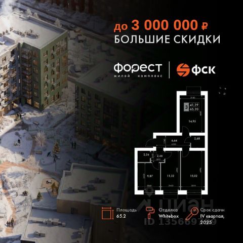 Прямая продажа от застройщика! Корпус 1.1 сдан! Жилой Комплекс комфорт-класса. Продаётся 3-к квартира номер 113 общей площадью 69.8 кв.м. на 6-м этаже 6 этажного здания. Отделка Whitebox. Цена с учётом скидки. Особенности квартиры: - Мастер-зона с санузлом и гардеробной. Всё для вашего комфорта и удобства, включая личный санузел и гардероб. - Угловая планировка - больше пространства для ваших идей. - Увеличенное количество окон - дополнительное освещение и свежий воздух. - Евроформат - просторное и удобное жилье с отличной планировкой. - Просторная кухня - место для семейных ужинов и кулинарных экспериментов. - Гардеробная - удобство для хранения и организации вещей. - Балкон - открытое пространство для отдыха. - Лоджия - уютное место для отдыха и тишины. Квартира с предчистовой отделкой (White box). Вам не придется заниматься черновыми и трудоёмкими работы, а чистовую отделку и дизайн - сделайте на свой вкус. Информация о комплексе: "Форест" - жилой комплекс комфорт-класса, созданный для тех, кто ищет гармонию с природой, не отказываясь от городского ритма. Расположенный в окружении леса и реки, он воплощает мечту о загородной жизни со всеми удобствами города. Здесь можно проживать самые тёплые моменты с близкими, дышать свежим хвойным воздухом, встречать утро на собственной террасе или проводить вечера с друзьями под открытым небом. Благоустроенная территория, прогулочные дорожки и зоны отдыха создают атмосферу уюта и гармонии. Поблизости - лес и Волга, куда можно выбраться на прогулку в любое время, не дожидаясь выходных. Благодаря вечнозелёным растениям и продуманному озеленению, дворы остаются зелёными круглый год. Транспортная доступность: - 4 мин. пушком до автобусной остановки - 5 мин. на машине до школы Внутренняя инфраструктура: Продуманное пространство для жизни, отдыха и развития. На территории комплекса работает собственный детский сад - современное и безопасное пространство, где дети всегда рядом с родителями. Во дворе установлены игровые комплексы для активных прогулок и развития малышей на свежем воздухе. Жителям доступны кафе и магазины, площадки для прогулок с питомцами, зоны для пикников и барбекю. Для любителей активного образа жизни предусмотрены велодорожки, воркаут-зоны и тропы для хайкинга, а в шаговой доступности находятся планетарий и глэмпинг. Просторный двор без машин и закрытая территория с системой контроля доступа обеспечивают высокий уровень безопасности и приватности. Здесь можно по-настоящему расслабиться и чувствовать себя дома - в окружении природы, комфорта и заботы о каждом дне.