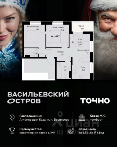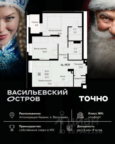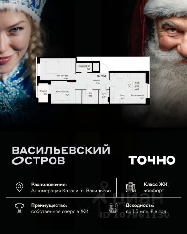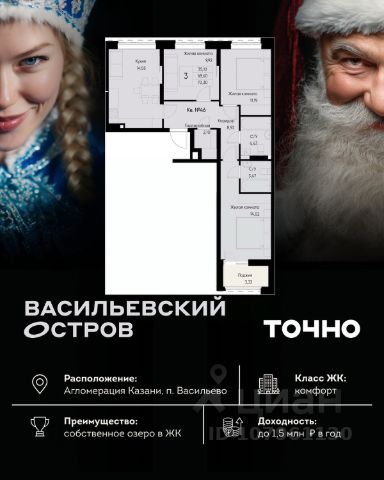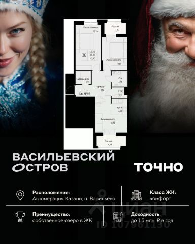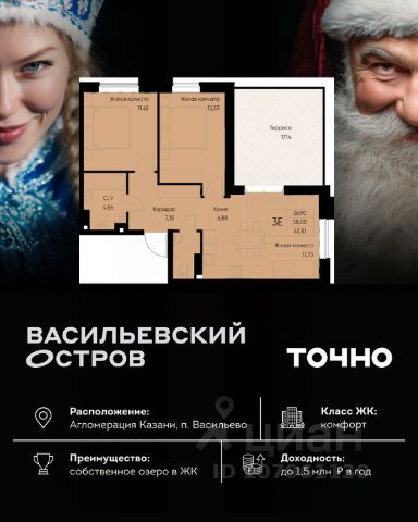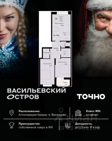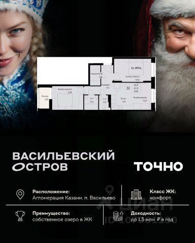 ЖК "Васильевский остров" — масштабный проект ТОЧНО в Казанской агломерации. Просторная территория 88 Га спроектирована для комфортной жизни: озеро с набережной и пляжем, каток, зелёные маршруты. В проекте комплекса — школа на 1 224 места, 2 детских сада на 680 мест, детская и взрослая поликлиники, фитнес-центр с бассейном, термальный комплекс, фермерский рынок, магазины, кафе и рестораны.