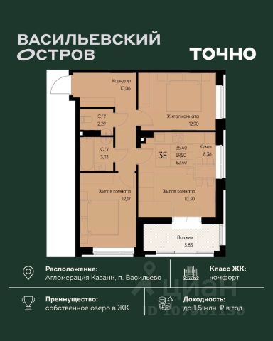 ЖК "Васильевский остров" — масштабный проект ТОЧНО в Казанской агломерации. Просторная территория 88 Га спроектирована для комфортной жизни: озеро с набережной и пляжем, каток, зелёные маршруты. В проекте комплекса — школа на 1 224 места, 2 детских сада на 680 мест, детская и взрослая поликлиники, фитнес-центр с бассейном, термальный комплекс, фермерский рынок, магазины, кафе и рестораны.