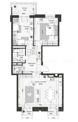 -Большая площадь - 114,1 кв м без учета лоджий, с лоджиями 123,1 кв м