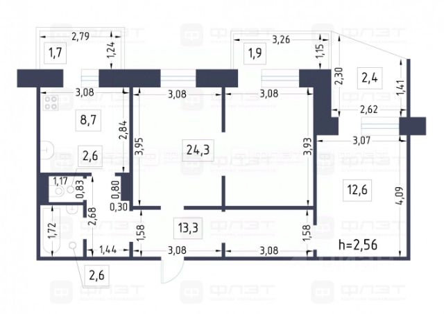 Общая площадь квартиры: 108 м2