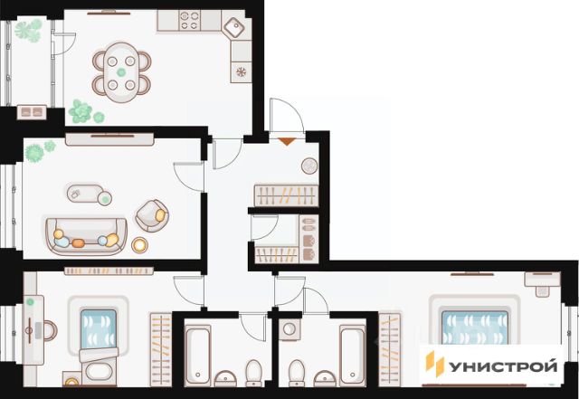 Аквамарин "Аквамарин" проект компании "Унистрой", расположенный в тихом месте у озера, всего в 30 метрах от воды. Парк, набережная и озеро для рыбалки создают атмосферу загородного уикенда в 5 минутах от дома. Комплексная жилая застройка включает 3 дома с закрытыми дворами, обеспечивая жителям уют, комфорт и безопасность. Городская среда Квартал комфорт-класса расположен рядом с озером Средний Кабан и Монастырской протокой. До центра города 10 минут на авто. Фасады домов выполнены в сдержанных европейских цветах, дополнены стильной подсветкой. Для удобства предусмотрено два заезда: через улицу Варганова и Фермское шоссе. Рядом расположены ТЦ "KazanMall", "Кольцо", набережная озера Кабан, Казанский Кремль. Природа В парке вы сможете отдохнуть от городской суеты и побыть наедине с природой, заняться спортом и провести выходные с семьей. В "Аквамарине" возможны любые сценарии отдыха: дружеские вечера, пикники, рыбалка, романтические прогулки, йога, игры с детьми. На набережной вас будут ждать велодорожки и разнообразные общественные пространства. Комфорт В комплексе 3 дома с закрытыми дворами без машин и доступа посторонних. Дворы соединены живописными бульварами. Прогулочные зоны ведут в парк и к озеру. Жители оценят протяженность вело- и беговых маршрутов, а также близость магазинов, аптек, кафе, салонов красоты и ресторанов. Дворы-парки Места для отдыха организованы и внутри дворов. Игровые локации для детей, воркаут-зоны, спортплощадки для футбола, волейбола, баскетбола, позволят найти развлечения по интересам. Покрытия детских площадок и прогулочных зон выполнены из природных материалов. Внимание к деталям Территория комплекса, дворы и первые этажи подъездов, оснащены видеонаблюдением. Вход в подъезд на уровне земли. Домофоны установлены в теплых тамбурах. В домах скоростные бесшумные лифты. На первых этажах предусмотрены колясочные комнаты с велопарковками и местами для хранения. Планировки В "Аквамарине" представлены различные планировки: студии, 1-, 2-, 3-комнатные квартиры, в том числе евроформаты. Большой выбор квартир под любые потребности: с кухнями-гостиными, собственной кладовой для кухни, угловыми или панорамными окнами, видами на озеро и Гребной канал. Также предлагается уникальный формат урбан-вилл с личным входом, варианты с террасами на первых и последних этажах, квартиры с теплыми лоджиями. Дома будут сдаваться в качественной предчистовой отделке. Бережливое потребление Показания приборов учёта воды, электричества, тепла будут автоматически передаваться в Сервисную компанию. В квартиры будет поступать очищенная питьевая вода. Школа, детские сады Школа на 1224 места в шаговой доступности. Детский сад на 220 мест прямо на территории ЖК. Все социальные объекты в 10 минутах ходьбы. Детские учреждения будут выполнены в единой стилистике и концепции комплекса и станут отличной образовательной базой для детей. Паркинг В комплексе будут различные варианты паркинга: многоуровневый паркинг на 773 места, гостевые места на территории Рос