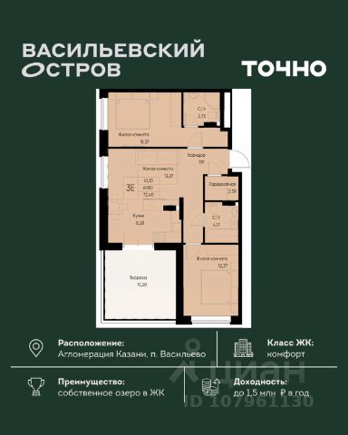 Продаётся шикарная "евро"трехкомнатная квартира в чистейшем районе пригорода Казани со всей дорогой мебелью и техникой!!! С индивидуальным отоплением!!! С высокими потолками 2,65 метров!!! Дом кирпичный!!! Дом 2015 года постройки. Большая кухня-гостиная 20 кв.м. и 2 спальни, выполнена в стиле Барокко, со встроенной немецкой техникой Farnelli, Korting, с посудомойкой Whirlpool, большой холодильник LG, обеденный стол с шестью стульями, диван на кухне, спальный гарнитур Шатура, горка, шкаф вместительный в спальне, шкаф-купе в прихожей с банкеткой. Это все остается!!! В ванной комнате установлен мини-джакузи. Санузел с биде и инсталляцией, все в кафеле. На полу выложен высокого качества ламинат, тёплые полы с лучевой разводкой. Потолки натяжные с точечным освещением и дорогими светильниками. Ремонт сделан качественно!!! Самые низкие коммунальные платежи за квартиру в районе 4000 рублей. Во дворе всегда есть место для парковки. Удобная детская площадка с ограждением. Тишина, покой!!! Дом трехэтажный кирпичный, соседей немного, все семейные. 1 взрослый собственник. Без обременений!!!