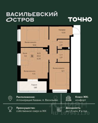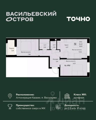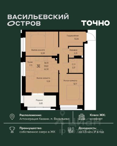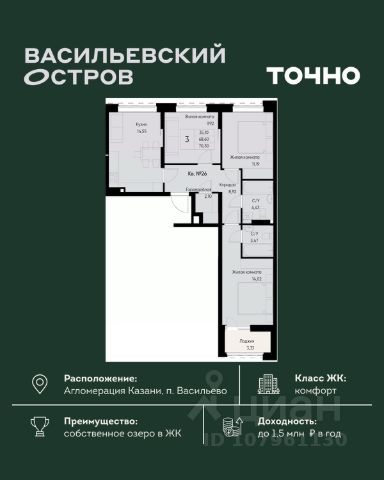 ЖК "Васильевский остров" — масштабный проект ТОЧНО в Казанской агломерации. Просторная территория 88 Га спроектирована для комфортной жизни: озеро с набережной и пляжем, каток, зелёные маршруты. В проекте комплекса — школа на 1 224 места, 2 детских сада на 680 мест, детская и взрослая поликлиники, фитнес-центр с бассейном, термальный комплекс, фермерский рынок, магазины, кафе и рестораны.
