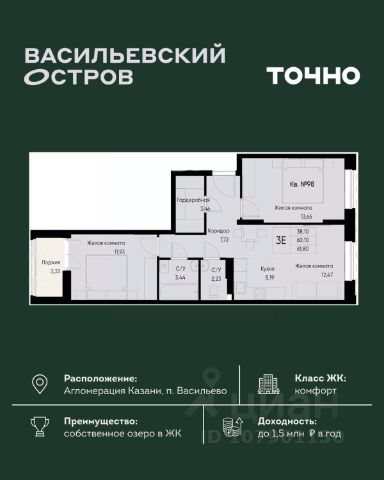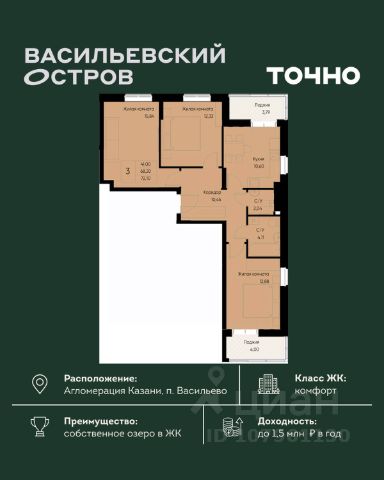 ЖК "Васильевский остров" — масштабный проект ТОЧНО в Казанской агломерации. Просторная территория 88 Га спроектирована для комфортной жизни: озеро с набережной и пляжем, каток, зелёные маршруты. В проекте комплекса — школа на 1 224 места, 2 детских сада на 680 мест, детская и взрослая поликлиники, фитнес-центр с бассейном, термальный комплекс, фермерский рынок, магазины, кафе и рестораны.