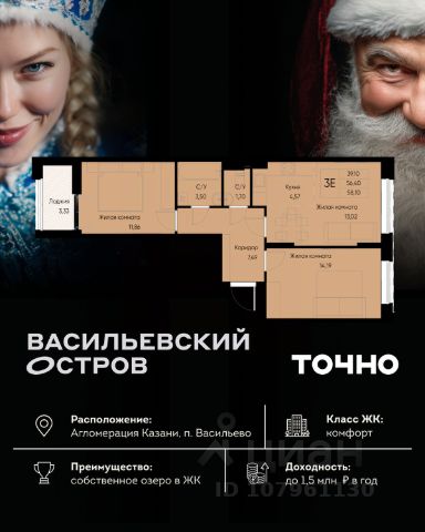 Продаётся 3-комнатная квартира в центрепосёлка Васильево по ул. Школьная 15