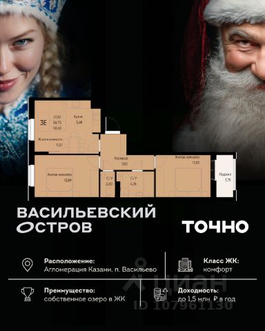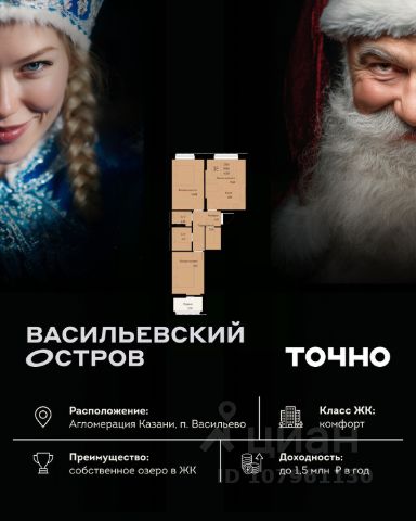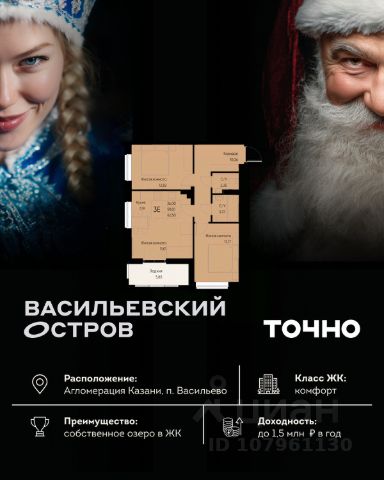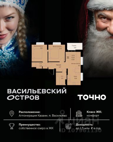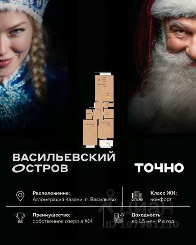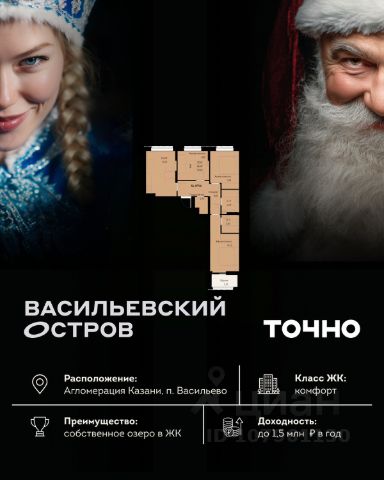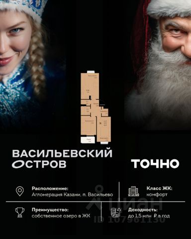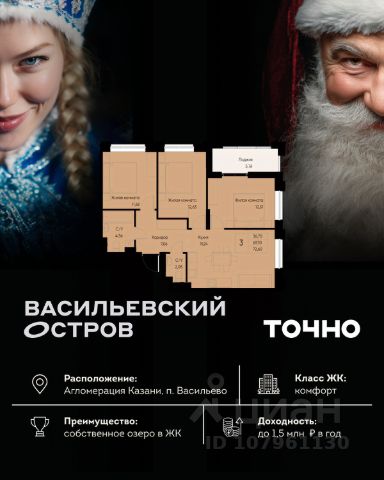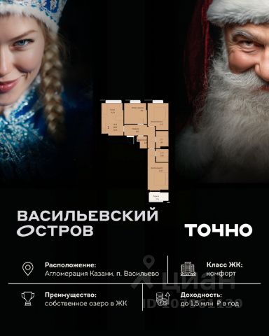 Купить 3-комнатную квартиру рядом со школой в острове ЖК Васильевский в поселке городского типа Васильево