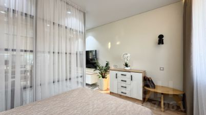 Левая часть квартиры это большая кухня-гостиная, два сан. узла, прачечная, сауна, терраса то есть места активного проведения времени семьи и гостей. Правая часть квартиры это ПРИВАТНАЯ зона куда нет доступа гостям, где расположены 3 просторные спальни, 3 сан. узла, лоджия либо рабочий кабинет на выбор. Благодаря реально панорамному остеклению окон и высоких потолков в квартире много естественного света и пространства, ничего не давит, находится в такой квартире очень комфортно.