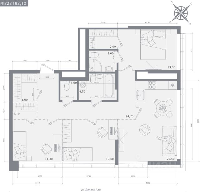 Продаётся 3-комнатная квартира в строящемся доме (Дом 1), срок сдачи: IV-кв. 2027, общей площадью 100.9 кв.м., на 14 этаже.