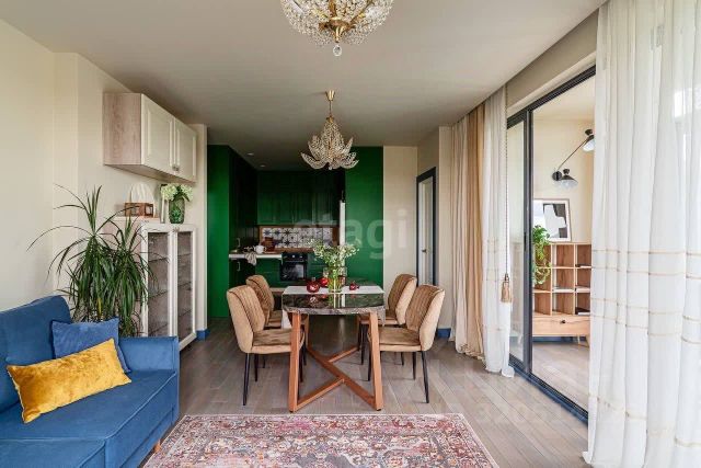 КВАРТИРА С ПРЯМЫМ ВИДОМ НА КРЕМЛЬ И КАЗАНКУ! ЛУЧШИЙ ВАРИАНТ ДЛЯ ВАС! Продам ВИДОВУЮ, квартиру (евро3) площадью 86 кв.м. на комфортном 19 этаже в уникальном комплексе элитного класса ATLANTIS DELUXE. Закрытая территория с круглосуточной охраной и видеонаблюдением, 2 уровня подземной парковки, консьерж-сервис, шикарный холл первого этажа, 3 скоростных лифта KONE премиум класса, обзорные площадки, панорамное остекление с зеркальным фасадом, статусные соседи, все в этом доме говорит о его престиже и уникальности. Выход в закрытый двор на стилобате осуществляется через холл второго этажа с зоной ресепшн. В холле для жителей предусмотрена зона отдыха, санузел, лапомойка (комната для мытья лап домашних животных), консьерж сервис. Квартира с уникальным новым дизайнерским ремонтом и имеет идеальную планировку: - кухня-гостиная 25 кв.м. с кондиционером, панорамным видом на Кремль и реку Казанку, с выделенной кухонной зоной с островом из искусственного камня. Кухня сделана под заказ из натурального шпона американского ореха, оборудована встроенной техникой (холодильник, варочная панель, духовой шкаф, микроволновка, посудомойка и втяжка). В зоне гостиной дизайнерский диван сделанный под заказ, на стене картина написанная маслом. На полу крупноформатный керамогранит с системой теплого пола с 2мя зонами. Несколько сценариев освещения, шторы с электрокарнизами с пультом управления; - мастер-спальня 13 кв.м. с кондиционером, панорамным видом на Кремль и Казанку, двуспальной кроватью, сделанной под заказ, большим гардеробом и собственным санузлом, с ванной и инсталляцией с гигиеническим душем. В скрытой нише установлен водонагреватель и система защиты от протечек с датчиками в мокрых точках. Несколько сценариев освещения, шторы с электрокарнизами с пультом управления. На полу дорогой паркет; - спальная (детская) комната 12 кв.м. с кондиционером, большим гардеробом, в нише под потолком установлен экран для проектора с элетроприводом, шторы с электрокарнизами с пультом управления. На полу дорогой паркет. Из панорамных окон откравается прекрасный вид на закат; - гостевой санузел с инсталляцией с гигиеническим душем, душевой, встроенной стиральной и сушильной машиной. Теплые полу с программируемым управлением и несколько сценариев освещения; - прихожая с гардеробной комнатой при входе. - кладовое помещение и техническое для блока кондиционера. Квартира продаётся со всей мебелью и техникой, остаётся полностью оснащённая кухня, со встроенной техникой, мягкая мебель, двухспальная кровать сделанная по спец заказу. Сделан качественный ремонт по эксклюзивному дизайн - проекту, дизайнерские светильники, качественная сантехника, все стены выведены под 0 и покрашены, на полу крупноформатный керамогранит, в спальнях паркет, керамогранит в санузле. Отличное местоположение на границах трех районов: Ново-Савиновского, Московского и Кировского позволяет вам добраться до центра за 7 мину. Развитая инфраструктура, рядом ЖК 5 ЗВЕЗД, Парк Кырлай, ЗАГС Чаша, Кремлевская Набереж