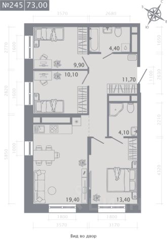 Продаётся 3-комнатная квартира в строящемся доме (Корпус 2), срок сдачи: I-кв. 2029, общей площадью 73 кв.м., на 19 этаже.