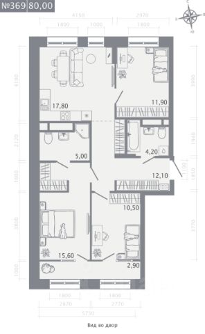 Продаётся 3-комнатная квартира в строящемся доме (Корпус 2), срок сдачи: I-кв. 2029, общей площадью 80 кв.м., на 3 этаже.