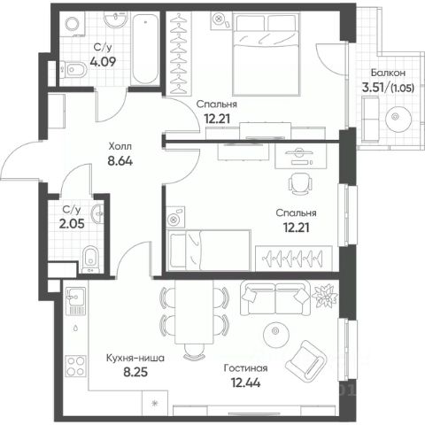 • Жилая площадь 37 м², Светлые, изолированные комнаты, в детской теплый пол, в большой комнате 2 окна, при желании можно сделать зонирование, разделив ее на спальню и гостиную. Окна выходят на обе стороны,
