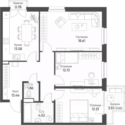 3-комнатные квартиры в жилом комплексе Квартал СюитаЖК «Квартал Сюита»