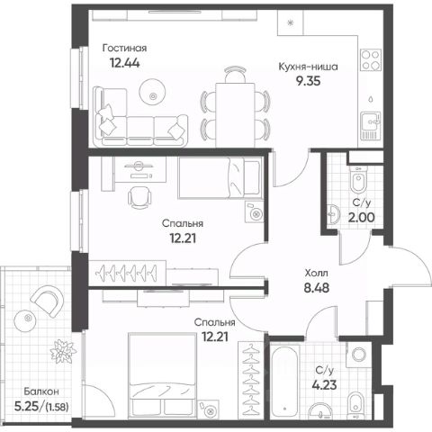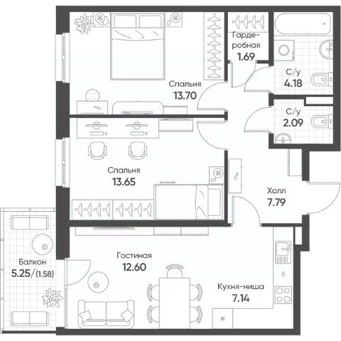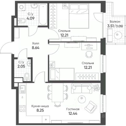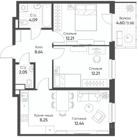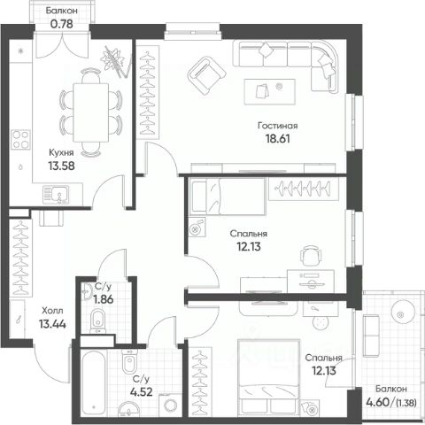 • ✅ Минимальная площадь: 60,9 м²