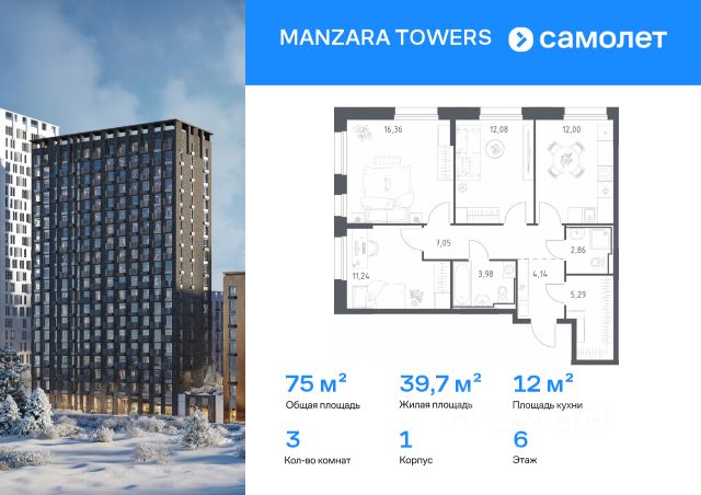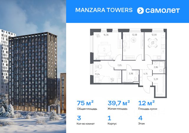 Строим кварталы для жизни с заботой о будущем. Предлагается 3-комнатная квартира комфорт-класса 71,05 кв.м в корпусе 5 на 11 этаже, в MANZARA TOWERS Квартира с черновой отделкой. Доступность опции "отделка" и возможность комплектации мебелью и декором уточняйте у застройщика. Приобрести квартиру возможно по специальным акциям от застройщика, с текущими условиями акций можно ознакомиться в блоке "Акций". Цена динамическая и может отличаться, уточняйте актуальность у застройщика. Manzara Towers — это дома высотой от 7 до 24 этажей. В увеличенных окнах с зеркальной поверхностью отражаются облака и солнечные блики. Тихий двор с игровыми площадками и воркаут-пространством идеален для прогулок с кофе. На первом этаже есть выход на стилобат, где появятся зеленые оазисы и открытые террасы. Дома соединяет между собой частично прозрачный пешеходный мост. Предусмотрены подземный и 6-этажный многоуровневый паркинги. До ж/д вокзалов можно доехать за 20 минут. Или в обеденный перерыв встретиться с друзьями в центре города — дорога на машине займет около 15 минут. На первых этажах корпусов откроется детская поликлиника, ФОК с бассейном, магазины, кафе и салоны красоты. Для маленьких жителей уже работают 3 детских сада и лицей, до которых можно дойти за 615 минут. Во всех наших корпусах входы в светлые лобби находятся на уровне земли. На первом этаже есть специальные места для хранения колясок и велосипедов.