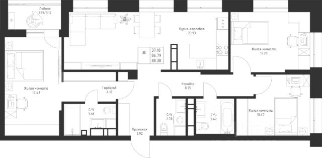 Продается 3-комнатная квартира 291 площадью 75,29 кв.м на 2 этаже 17-ти этажного дома проекта "Мой Ритм" от "Ак Барс Дом". Купить квартиру можно в ипотеку со ставкой от 4,5%. "Мой Ритм" — современный жилой комплекс комфорт-класса в Советском районе Казани, на пересечении пр. Победы и ул. Сахарова. Удобная транспортная развязка, развитая сеть общественного транспорта, скоро откроется станция метро "Тулпар". На территории ЖК Многопрофильный лицей и 2 детских сада, поликлиника. Рядом ТРЦ "МЕГА" и Горкинско-Ометьевский парк. "Мой Ритм" призер Всероссийского конкурса от Единого ресурса застройщиков РФ "ТОП ЖК". Авторское благоустройство: детские эко-площадки, спортивные зоны с резиновым покрытием, пешеходный бульвар и озеленение. Скоро появится большой игровой парк "Озеро дракона" с зонами активности и отдыха. Для безопасности дворы закрыты от машин и посторонних, а по периметру установлено видеонаблюдение. Паркинги с заездом по считыванию номеров, система IP-домофонии с функцией Face-ID, возможности ""умного"" дома для вашей будущей квартиры. Просторная 3-комнатная квартира с продуманной планировкой. Просторная кухня, где вся семья может собираться за большим столом, 3 отдельные комнаты для личного пространства домочадцев. В квартире функциональная прихожая с нишами по гардеробную, 2 санузла и 2 лоджии. Удачные пропорции жилых комнат и высокие потолки 2,7 м. позволят воплотить любые дизайнерские задумки. Уход за домом возьмёт на себя УК "Всегда рядом". Благодаря грамотно выстроенной системе, обслуживание квартиры через управляющую компанию "Всегда рядом" будет обходиться дешевле по сравнению с другими. Опытные специалисты помогут вам обеспечить комфортное проживание. Дом там, где мы. Купить 3-комнатную квартиру в ЖК Мой Ритм в Казани.