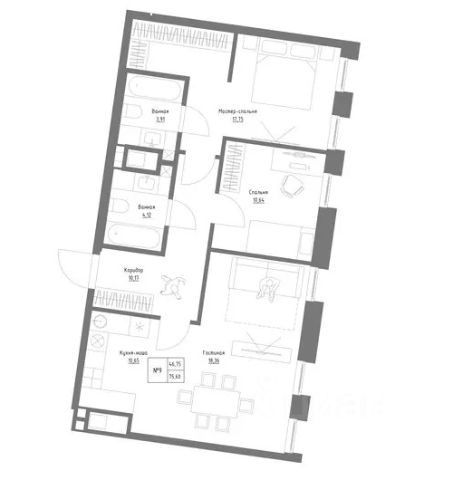 Продаётся 3-комнатная квартира в строящемся доме (Корпус 1), срок сдачи: III-кв. 2026, общей площадью 73.91 кв.м., на 4 этаже. Новый жилой комплекс "по ул. С.Садыковой" от застройщика "СЗ Резиденция на Сары Садыковой" расположен по адресу: Россия, Республика Татарстан, Казань, улица Сары Садыковой