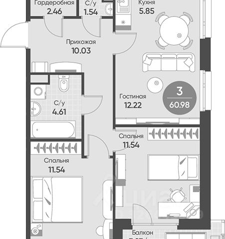 Объект 112134 Отличное предложение!Ново-Савиновский район, Жилой комплекс "Магеллан", улица Чистопольская 38, монолитно-кирпичный дом.