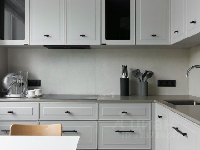 Квартира сочетает в себе концептуальный стиль и минимализм. Мебель по индивидуальному заказу вписана в интерьер таким образом, что её не заметно, при высокой функциональности. Это создаёт простор в каждом помещении. Стильный кухонный гарнитур, стеклянные шкафы с алюминиевым профилем. Квартира укомплектована мебелью, предметами интерьера, текстиля, декором, кухонный гарнитур с вместительной посудомоечной машиной, встроенной техникой.