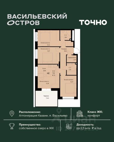 • ✓ В базе Циан 3 4-комнатных квартир на 1 этаже в муниципальном образовании Васильево республики Татарстан