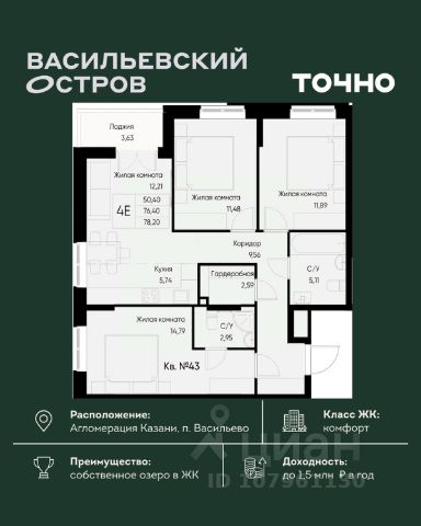 - Мастер-зона с санузлом и гардеробной. Всё для вашего комфорта и удобства, включая личный санузел и гардероб.