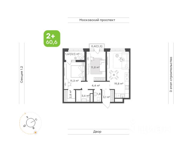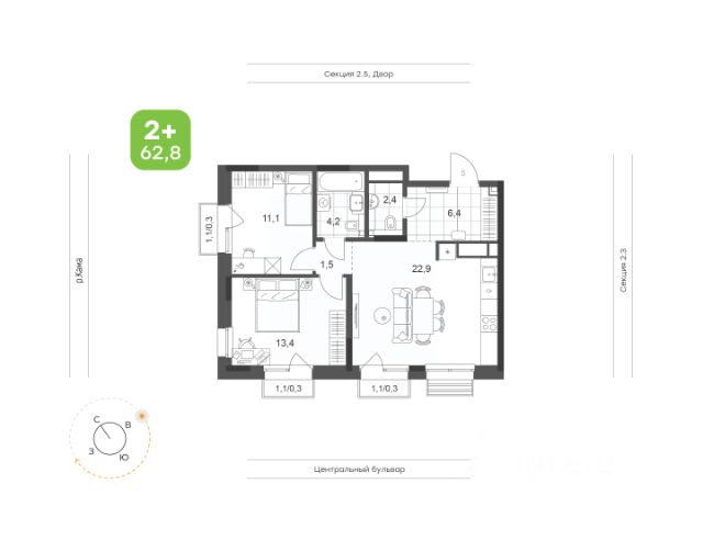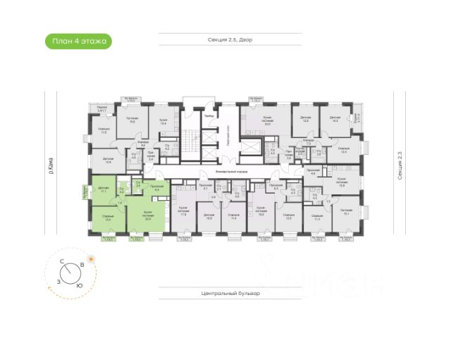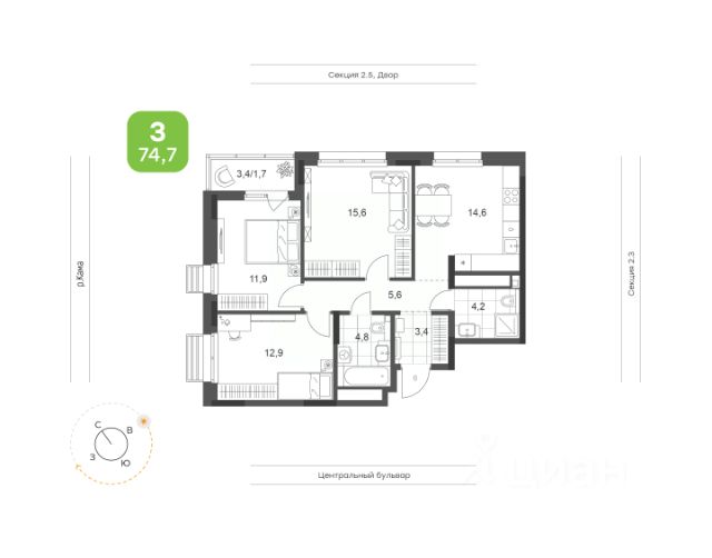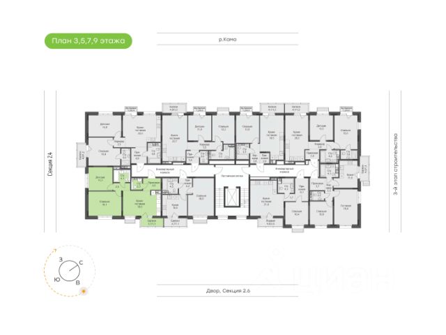 Светлая квартира с видом во двор Эргономичная спальня и детские правильной формы Просторная кухня-гостиная с удобным зонированием и выходом на лоджию Ванная комната и дополнительный санузел для комфорта семьи Прихожая с возможностью установки шкафа Высота потолка 2,73 м Улучшенная предчистовая отделка 5 квартир на этаже