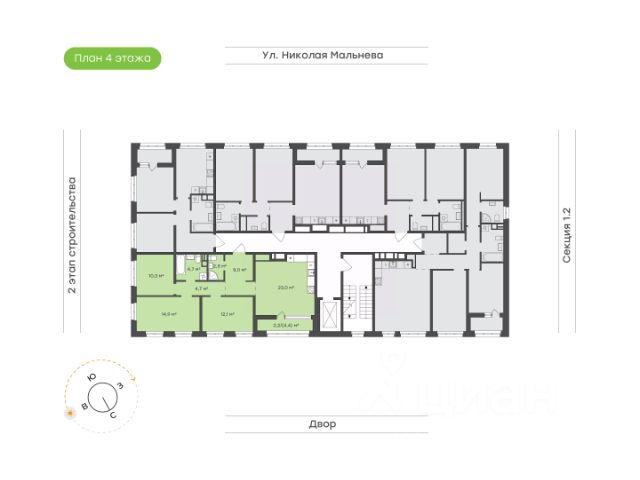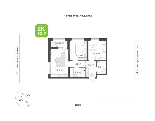 Окна на 2 стороны света Вместительная гардеробная в коридоре Ванная комната и дополнительный санузел для комфорта семьи Просторная кухня-гостиная Функциональные комнаты правильной формы Высота потолка 2,73 м Улучшенная предчистовая отделка