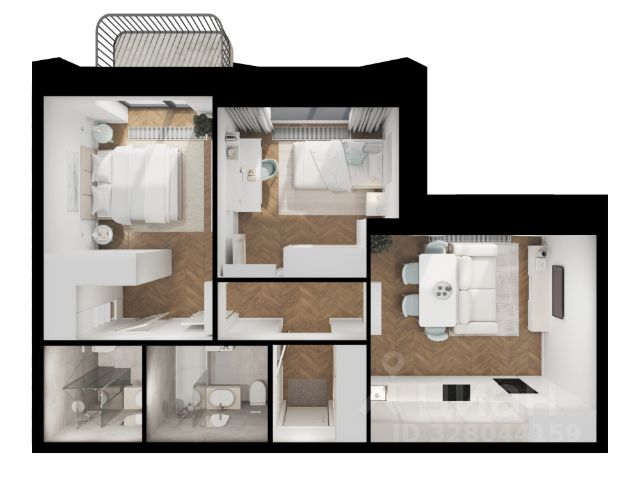 - Функциональная планировка: квартира с максимально удобной и полезной общей площадью 91,5 кв.м, просторная кухня-гостиная, мастер-спальня с собственной гардеробной и ванной комнатой, две уютные спальни, гостевой санузел, постирочная, продуманные системы хранения.