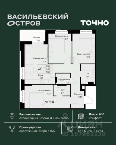ЖК "Васильевский остров" — масштабный проект ТОЧНО в Казанской агломерации. Просторная территория 88 Га спроектирована для комфортной жизни: озеро с набережной и пляжем, каток, зелёные маршруты. В проекте комплекса — школа на 1 224 места, 2 детских сада на 680 мест, детская и взрослая поликлиники, фитнес-центр с бассейном, термальный комплекс, фермерский рынок, магазины, кафе и рестораны.