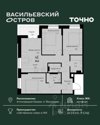 • ✓ В базе Циан 9 4-комнатных квартир на 6 этаже в Зеленодольском районе республики Татарстан
