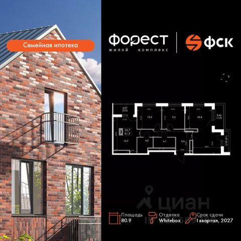 Продается 4-комн. квартира на 6-м этаже в строящемся проекте GloraX Экосити. Общая площадь лота составляет 79,41 кв. м, из которых 48,45 кв. м отведено под жилую и 12,37 кв. м под кухонную зону. Номер квартиры - 344