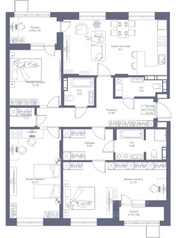 Продается 4-комнатная квартира 274 площадью 121,09 кв.м на 6 этаже 17-ти этажного дома проекта "Мой Ритм" от "Ак Барс Дом". Купить квартиру можно в ипотеку со ставкой от 4,5%. "Мой Ритм" — современный жилой комплекс комфорт-класса в Советском районе Казани, на пересечении пр. Победы и ул. Сахарова. Удобная транспортная развязка, развитая сеть общественного транспорта, скоро откроется станция метро "Тулпар". На территории ЖК Многопрофильный лицей и 2 детских сада, поликлиника. Рядом ТРЦ "МЕГА" и Горкинско-Ометьевский парк. "Мой Ритм" призер Всероссийского конкурса от Единого ресурса застройщиков РФ "ТОП ЖК". Авторское благоустройство: детские эко-площадки, спортивные зоны с резиновым покрытием, пешеходный бульвар и озеленение. Скоро появится большой игровой парк "Озеро дракона" с зонами активности и отдыха. Для безопасности дворы закрыты от машин и посторонних, а по периметру установлено видеонаблюдение. Паркинги с заездом по считыванию номеров, система IP-домофонии с функцией Face-ID, возможности """"умного"""" дома для вашей будущей квартиры. Комфортная 4-комнатная квартира для большой семьи. Здесь есть все, чтобы проводить время вместе за большим обеденным столом и при этом иметь личное пространство. Просторная кухня-гостиная в 25,7 кв. м, 3 отдельные комнаты, функциональная прихожая с нишами по гардеробную, 2 санузла и 2 лоджии, отдельная гардеробная комната. Мастер-спальня для хозяев квартиры с выходом на лоджию и санузлом. Удачные пропорции жилых комнат и высокие потолки 2,7 м. позволят воплотить любые дизайнерские задумки. Уход за домом возьмёт на себя УК "Всегда рядом". Благодаря грамотно выстроенной системе, обслуживание квартиры через управляющую компанию "Всегда рядом" будет обходиться дешевле по сравнению с другими. Опытные специалисты помогут вам обеспечить комфортное проживание. Дом там, где мы."