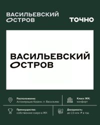 ЖК "Васильевский остров" — масштабный проект ТОЧНО в Казанской агломерации. Просторная территория 88 Га спроектирована для комфортной жизни: озеро с набережной и пляжем, каток, зелёные маршруты. В проекте комплекса — школа на 1 224 места, 2 детских сада на 680 мест, детская и взрослая поликлиники, фитнес-центр с бассейном, термальный комплекс, фермерский рынок, магазины, кафе и рестораны.