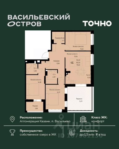 ЖК "Васильевский остров" — масштабный проект ТОЧНО в Казанской агломерации. Просторная территория 88 Га спроектирована для комфортной жизни: озеро с набережной и пляжем, каток, зелёные маршруты. В проекте комплекса — школа на 1 224 места, 2 детских сада на 680 мест, детская и взрослая поликлиники, фитнес-центр с бассейном, термальный комплекс, фермерский рынок, магазины, кафе и рестораны.