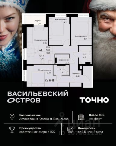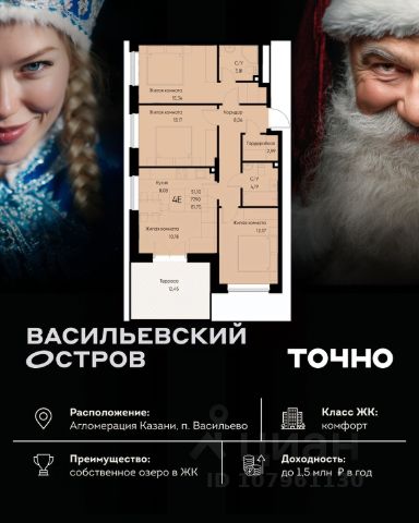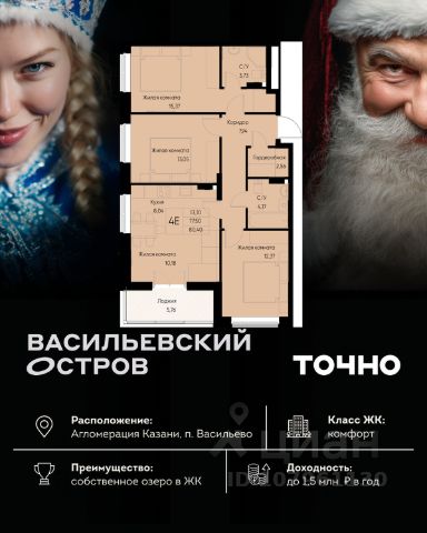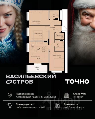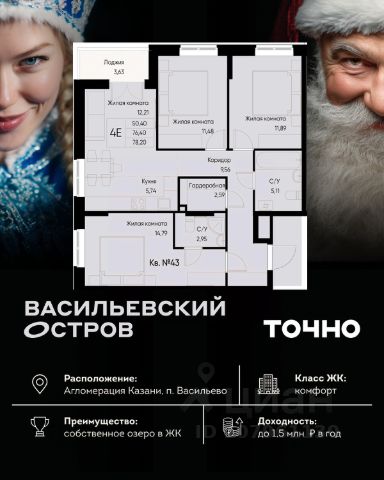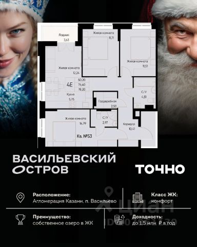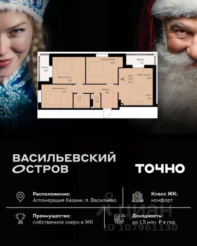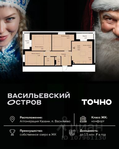 ЖК "Васильевский остров" — масштабный проект ТОЧНО в Казанской агломерации. Просторная территория 88 Га спроектирована для комфортной жизни: озеро с набережной и пляжем, каток, зелёные маршруты. В проекте комплекса — школа на 1 224 места, 2 детских сада на 680 мест, детская и взрослая поликлиники, фитнес-центр с бассейном, термальный комплекс, фермерский рынок, магазины, кафе и рестораны.