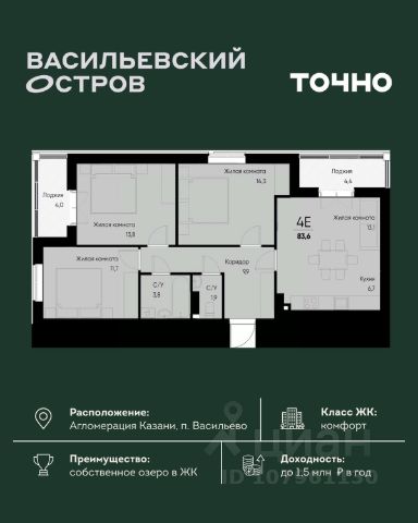 • ✓ В базе Циан 46 4-комнатных квартир в кирпично-монолитном доме в Зеленодольском районе республики Татарстан