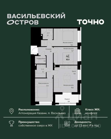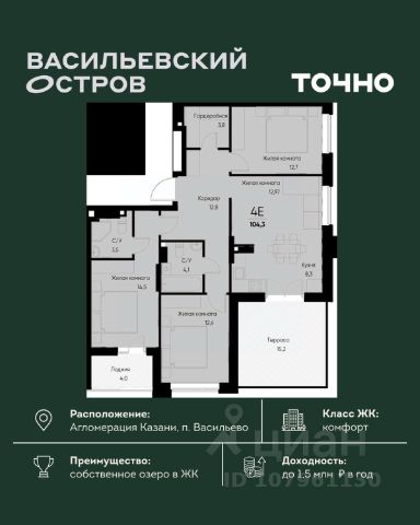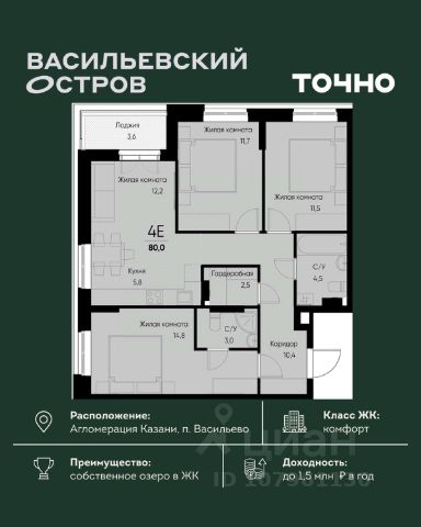 • ✓ В базе Циан 6 4-комнатных квартир на последнем этаже в поселке городского типа Васильево республики Татарстан