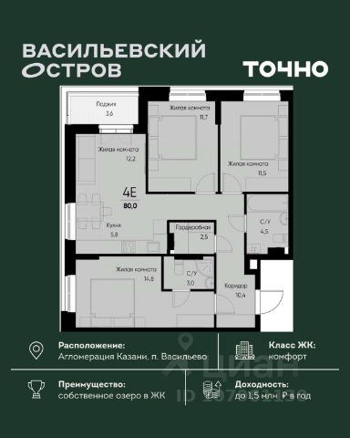 • ✓ В базе Циан 7 4-комнатных квартир на последнем этаже в поселке городского типа Васильево республики Татарстан