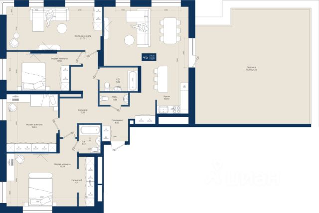 Продается 4-комнатная квартира 94 площадью 120,93 кв.м на 2 этаже проекта "Мой ритм" от "Ак Барс Дом". Купить квартиру можно в ипотеку со ставкой от 3,2%. "Мой ритм" — современный жилой комплекс в одном из лучших районов Казани, на пересечении пр. Победы и ул. Сахарова, рядом со строящейся станцией метро. Школы, детские сады, поликлиника в шаговой доступности. Рядом ТРЦ "МЕГА" и Горкинско-Ометьевский парк. Территория благоустроена: экологичные детские площадки, спортивные зоны с резиновым покрытием, озеленение. Через весь комплекс будет проходить прогулочный бульвар, а в центральной части - плейхаб "Озеро дракона" с зонами активности и отдыха. Для безопасности дворы закрыты от машин и посторонних, а по периметру установлено видеонаблюдение. Просторные подъезды с колясочными, входы на уровне земли. Проект "Мой Ритм" занял призовые места в номинациях "Лучший жилой комплекс-новостройка в Татарстане" и "Лучший проект в РФ, масштабная застройка свободных территорий". В квартирах продуманные планировки, функциональные прихожие и кухни, высокие потолки, места для хранения. Есть встроенный функционал "умной квартиры" системы, которая позволяет управлять жильём дистанционно. Обслуживание дома возьмут на себя специалисты управляющей компании "Всегда рядом". Они помогут обеспечить вам комфортное проживание. Дом там, где мы. Продается 4-комнатная квартира в новостройке в районе Советский в городе Казань.