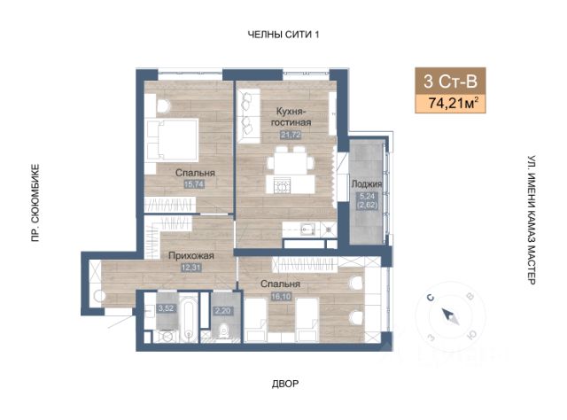 Продаётся 3-комнатная квартира в строящемся доме (Дом 3), срок сдачи: IV-кв. 2026, общей площадью 73.1 кв.м., на 2 этаже. Жилой комплекс по проспекту Сююмбике представляет собой 27-этажное здание. Застройщиком спроектированы квартиры с различными планировками: от одно до трехкомнатных. Благоустройство прилегающей территории включает в себя строительство детской площадки, а также зон отдыха. Предусмотрены открытые гостевые парковки. В шаговой доступности находятся детские сады, школы, медицинские учреждения, аптеки, магазины.