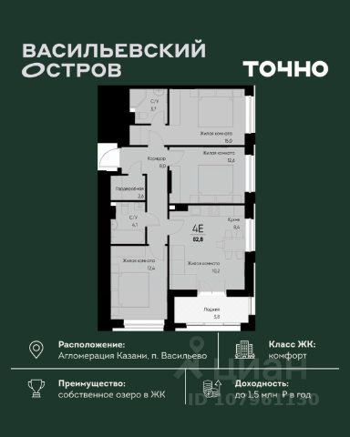 Продается 3-комн. квартира на 3-м этаже в строящемся проекте Экосити. Общая площадь лота составляет 63,22 кв. м, из которых 30,43 кв. м отведено под жилую и 15,87 кв. м под кухонную зону. Номер квартиры - 425