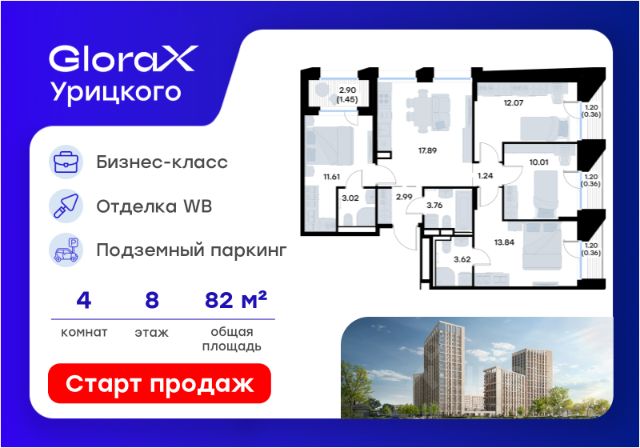Продается 4-комн. квартира на 6-м этаже в квартале бизнес-класса GloraX Урицкого. Общая площадь лота составляет 82,58 кв. м, из которых 47,53 кв. м отведено под жилую и 17,89 кв. м под кухонную зону. Номер квартиры - 222 GloraX Урицкого это идеальное сочетание динамики мегаполиса и камерности района, где каждое утро начинается легко, а каждый вечер наполнен ощущением дома Преимущества квартиры: просторная квартира с 4 спальнями и кухней-гостиной; угловая; 2 мастер-спальни; остекленная лоджия; 3 балкона; вид на город и во двор. Преимущества, которые изменят вашу жизнь: • Собственная инфраструктура: Всё для комфорта и досуга, не выходя за территорию проекта • Безопасность 24/7: Закрытая территория, видеонаблюдение, система "Умный дом" • Безбарьерная среда: Забота о каждом жителе, независимо от возраста • Футуристичные лобби: Эстетика и комфорт с первых шагов в вашем доме. • Колясочные в каждой секции: Больше пространства в ваших квартирах • Квартиры в отделке White Box: Готовый холст для реализации дизайнерских идей. • Благоустройство в стиле лесопарка: эко-пространство, где природа становится частью повседневной жизни. GloraX Урицкого это проект бизнес-класса для тех, кто живёт в ритме большого города, но ждёт безмятежности у себя дома. Здесь всё важное происходит рядом с вами: работа, встречи, спортивные и культурные активности, прогулки, образование и обучение. Здесь вы ощутите, что вы наконец-то дома — в доме, которого давно ждали. Стоимость действительна при 100% оплате или стандартной ипотеке.