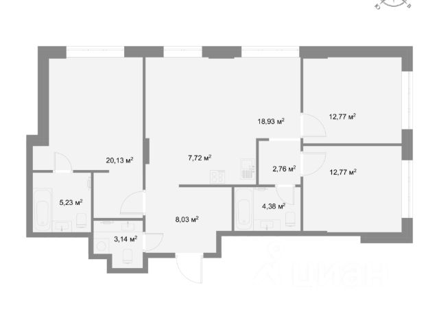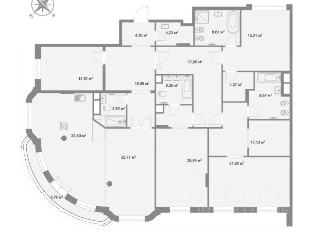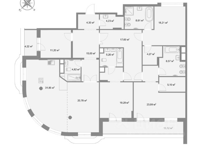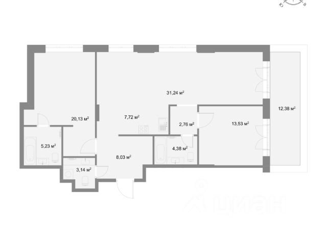 Просторные комнаты правильной формы: гостиная 30,5 кв м, жилые комнаты 24,6+17,5+15,8 кв м