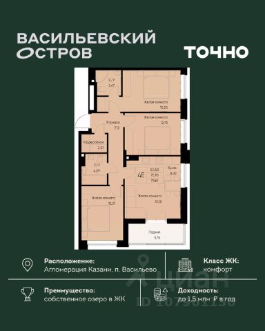 ГОРОД-ПАРК "ЗЕЛЁНАЯ ДОЛИНА" строится в экологичном пригороде Казани - всего в 15 минутах езды от города по обновленному Горьковскому шоссе. Это полноценный город с живописным окружением, свежим воздухом и всей необходимой инфраструктурой: - комплекс комфорт-класса из 17 домов со своим детсадом, торговым центром, фитнес-центром с бассейном, spa, банным комплексом, - огромный парк 3,5 га с озером, барбекю-зоной, спортивными кортами, воркаутом, - частный детский сад "Уникум Land" на 120 мест с центром развития на 100 мест с логоритмикой, нейрогимнастикой на сиббордах, - 2 лицея в шаговой доступности, - фреш-кафе с открытой летней террасой, - "закрытые дворы" с игровыми и спортивными комплексами, видеонаблюдением и ландшафтным дизайном, - большой выбор 1-, 2-, 3-комнатных квартир с одной и двумя спальнями, большими кухнями и гардеробными, - дома строятся из кирпича с толщиной стен в полметра (510 мм), поэтому квартиры очень тёплые, - в квартирах выполнена качественная предчистовая отделка White box или готовый ремонт, - все квартиры оснащены индивидуальным отоплением, поэтому вы сможете сами регулировать температуру в своей квартире и коммунальные платежи, - свое комьюнити с кинопоказами, фитнес-тренировками, фестивалями, - заботливая Управляющая компания на связи с жителями 24/7, - большой уличный паркинг с бесплатными местами. Кстати, сейчас на покупку квартир в ГОРОДЕ-ПАРКЕ "ЗЕЛЁНАЯ ДОЛИНА" действует уникальная программа рассрочки без % на 36 месяце на строящиеся и сданные дома! Вы сможете сразу заехать в свою новую квартиру. Начните новую жизнь в ритме большого города и в балансе с природой! 4-комнатной квартиры с евроремонтом в Зеленодольском районе республики Татарстан.