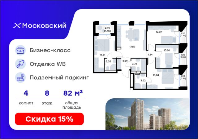 Продается 4-комнатная квартира 94 площадью 120,93 кв.м на 2 этаже проекта "Мой ритм" от "Ак Барс Дом". Купить квартиру можно в ипотеку со ставкой от 3,2%. "Мой ритм" — современный жилой комплекс в одном из лучших районов Казани, на пересечении пр. Победы и ул. Сахарова, рядом со строящейся станцией метро. Школы, детские сады, поликлиника в шаговой доступности. Рядом ТРЦ "МЕГА" и Горкинско-Ометьевский парк. Территория благоустроена: экологичные детские площадки, спортивные зоны с резиновым покрытием, озеленение. Через весь комплекс будет проходить прогулочный бульвар, а в центральной части - плейхаб "Озеро дракона" с зонами активности и отдыха. Для безопасности дворы закрыты от машин и посторонних, а по периметру установлено видеонаблюдение. Просторные подъезды с колясочными, входы на уровне земли. Проект "Мой Ритм" занял призовые места в номинациях "Лучший жилой комплекс-новостройка в Татарстане" и "Лучший проект в РФ, масштабная застройка свободных территорий". В квартирах продуманные планировки, функциональные прихожие и кухни, высокие потолки, места для хранения. Есть встроенный функционал "умной квартиры" системы, которая позволяет управлять жильём дистанционно. Обслуживание дома возьмут на себя специалисты управляющей компании "Всегда рядом". Они помогут обеспечить вам комфортное проживание. Дом там, где мы. Купить 4-комнатную квартиру с евроремонтом в Казани.
