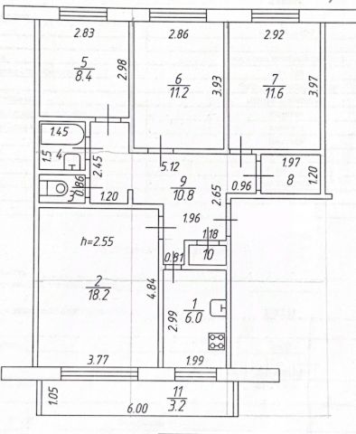 Арт. 111048493 4-х комнатная квартира в кирпичном доме в 350 метрах от метро