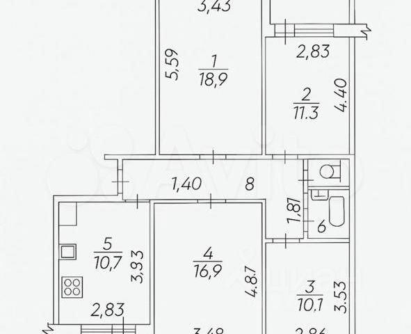 Арт. 111048493 4-х комнатная квартира в кирпичном доме в 350 метрах от метро